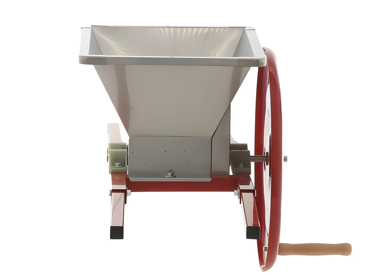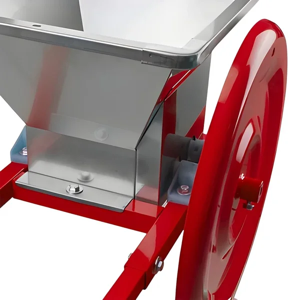 Käsikäyttöinen hedelmämurskain toimii ilman sähköä. Fratelli Baesso B100 murskain sopii hedelmien ja marjojen murskaamiseen ennen puristusta. Murskain on varustettu kahdella valssilla, joissa on raastavat ruostumattomasta teräksestä valmistetut terät.