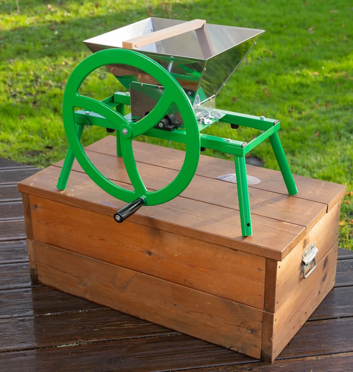 Nostaessasi murskaimen oikealle korkeudelle, voit työskennellä selkä suorana. Samalla saat sijoitettua ämpärin tai keräysastian vaivatta suoraan murskaimen alle.